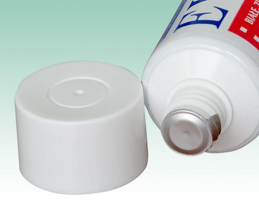 Per aumentare la tutela del consumatore, la spalla del tubo può essere saldata da una membrana di sicurezza che si strappa prima del primo utilizzo.