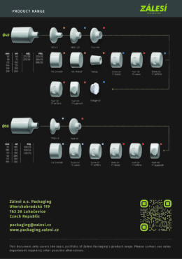Laminátové tuby vyrábíme v osmi základních průměrech: 19 mm, 22 mm, 25 mm, 28 mm, 30 mm, 32 mm, 35 mm, 40 mm a 50 mm.